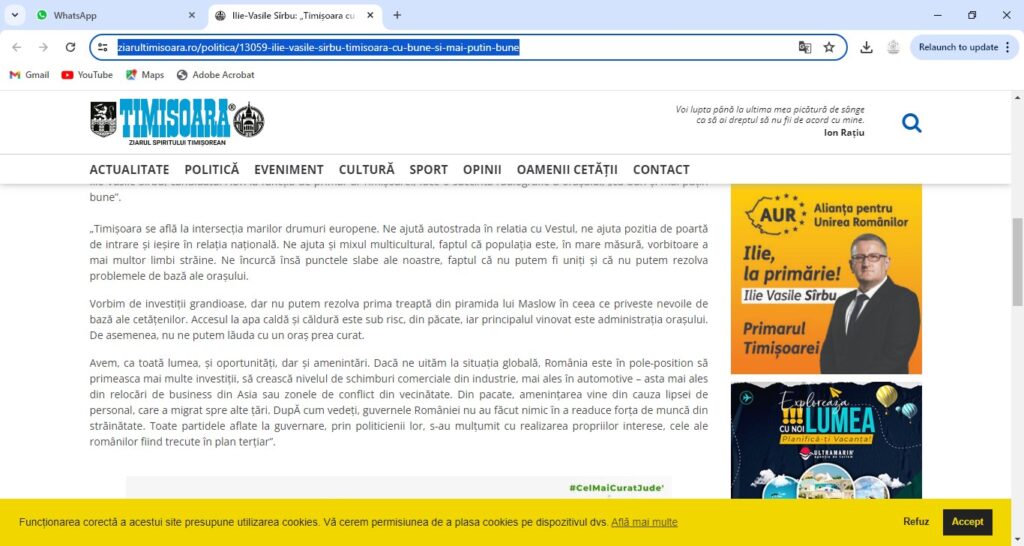 Primăria Municipiului Timișoara în guvernarea AUR va restabili conexiunea la componenta academică a orașului prin implicarea universităților în elaborarea planurilor de dezvoltare pe termen scurt, mediu și lung, fapt ce nu s-a realizat până acum. Este inadmisibil să ai patru universități de prestigiu, și să nu folosești potențialul acestora în favoarea orașului prin parteneriate strategice pe domeniul de activitate al fiecăreia în parte.